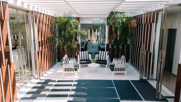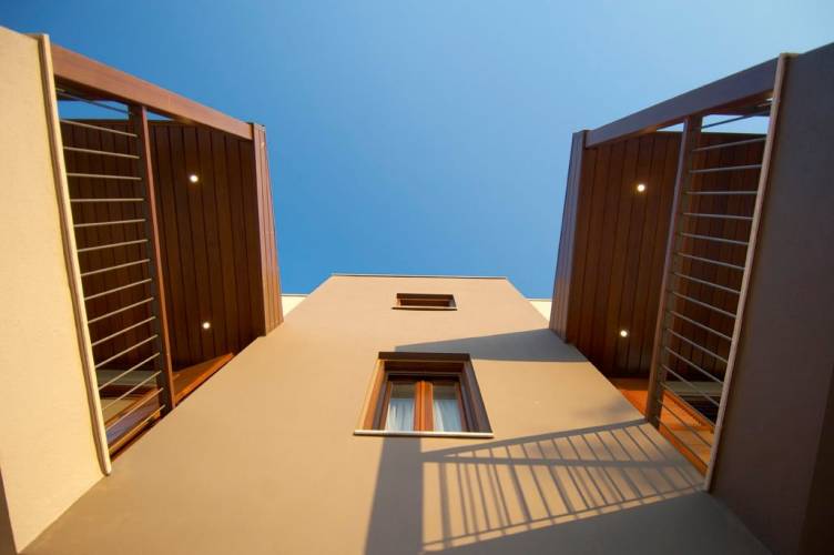 We have encompassed characteristics from the monastic fortification architecture of Holy Mount Athos where tall, cubic buildings with erkers, garrets and small windows dominate. We also extensively use materials like wood, iron and Byzantine brick that are also present in the monastic state. Inspired by the monastic courtyard we created spaces where people come together. Our unique approach has been approved by the Cultural Heritage Department of the Greek Ministry of Culture.